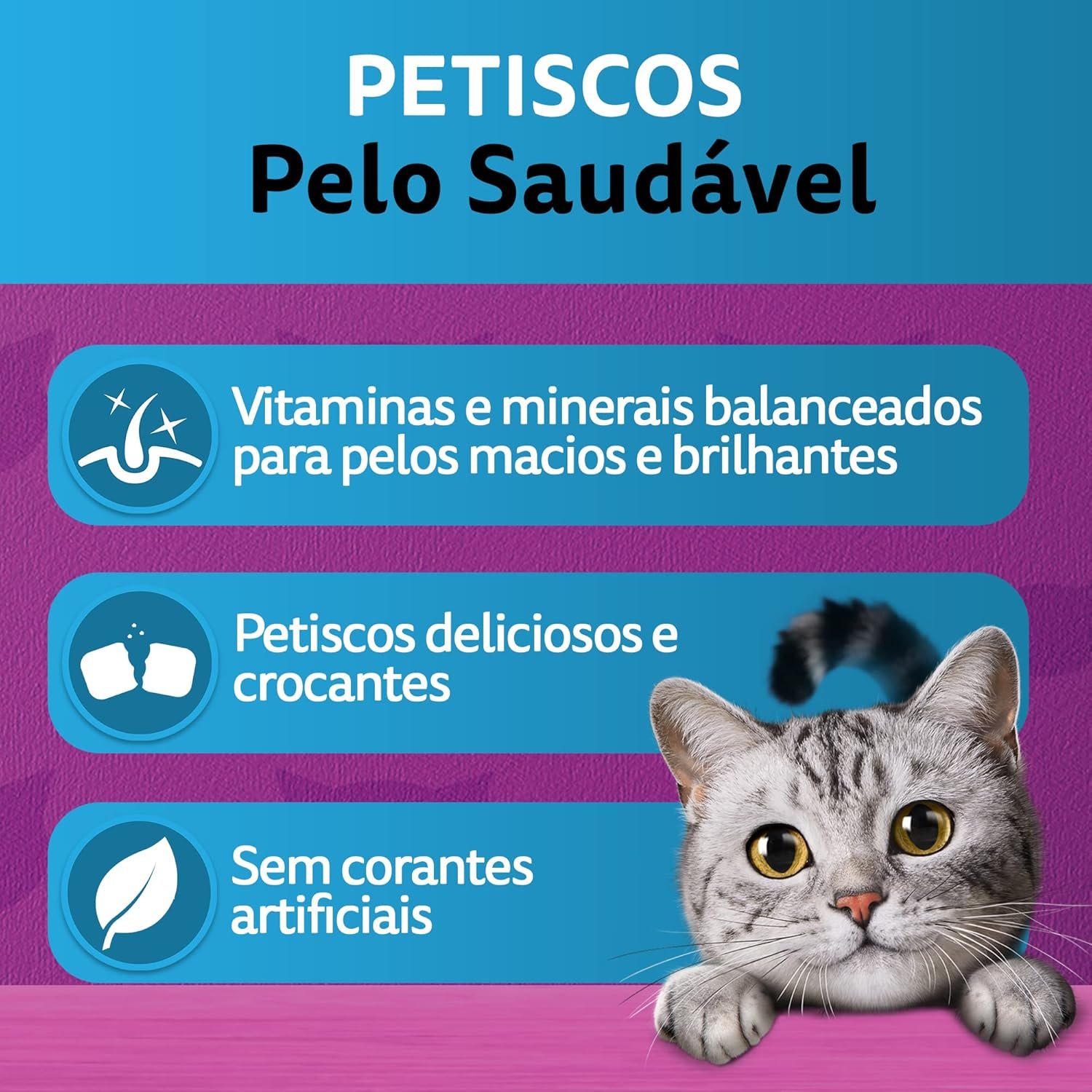 Outro ponto forte desses petiscos é que eles são enriquecidos com vitaminas e minerais, essenciais para a saúde dos gatos. Os benefícios incluem: