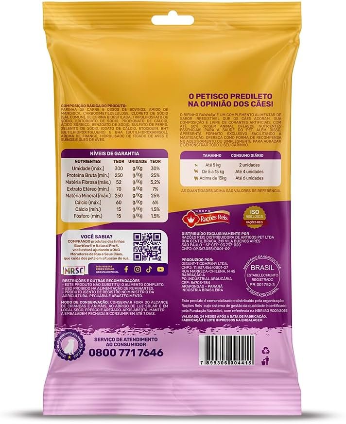 É comum encontrar snacks para cães que contêm aditivos e ingredientes de baixa qualidade. No entanto, com a composição do Bifinho Baw Waw, você garante um lanche que é verdadeiramente nutritivo e saudável. Isso é importante por várias razões:
