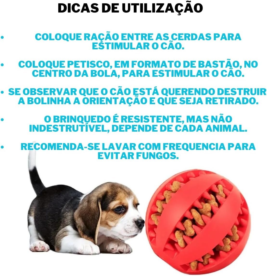 • Rotina de Alimentação: Coloque petiscos na bola e deixe seu cão brincar para estimular a mente enquanto se alimenta.