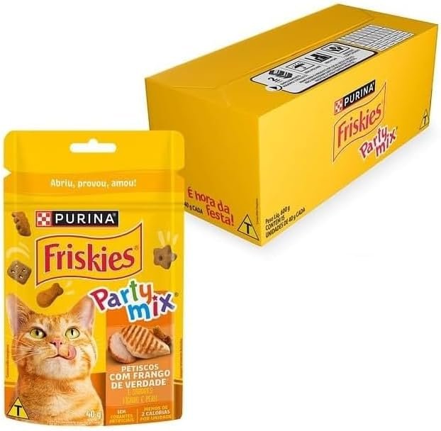 O FRISKIES® PARTY MIX é uma marca renomada da Nestlé Purina, conhecida por seu compromisso em oferecer alimentos de qualidade para animais de estimação. Este petisco é especialmente desenvolvido para gatos adultos, garantindo que eles tenham todos os nutrientes de que precisam enquanto desfrutam de um sabor inigualável.