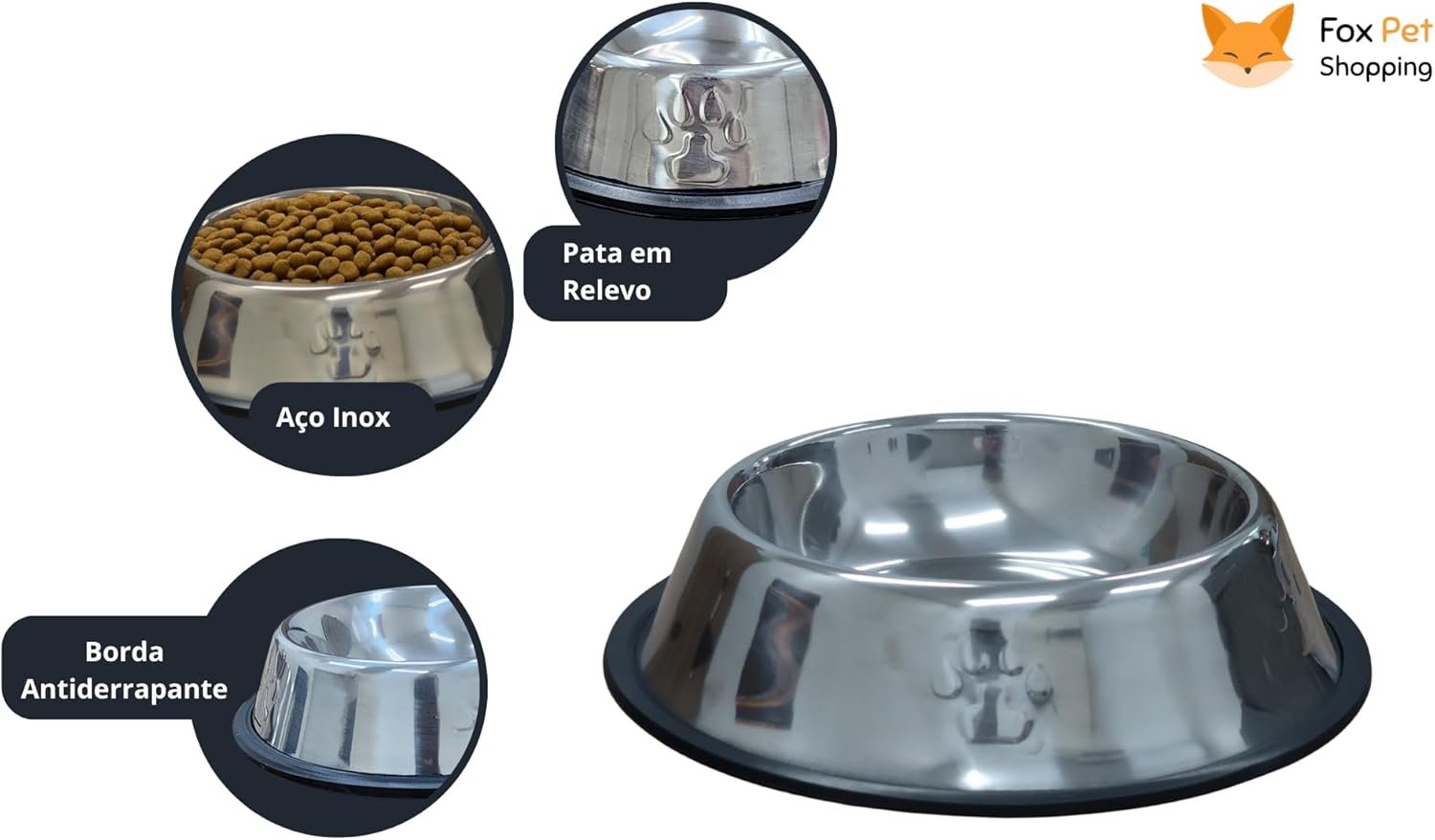 • Fácil Limpeza: O aço inox é fácil de limpar, o que é um grande benefício para a higiene do seu pet. Você pode simplesmente lavá-lo com água e sabão, ou colocá-lo na máquina de lavar louças.
