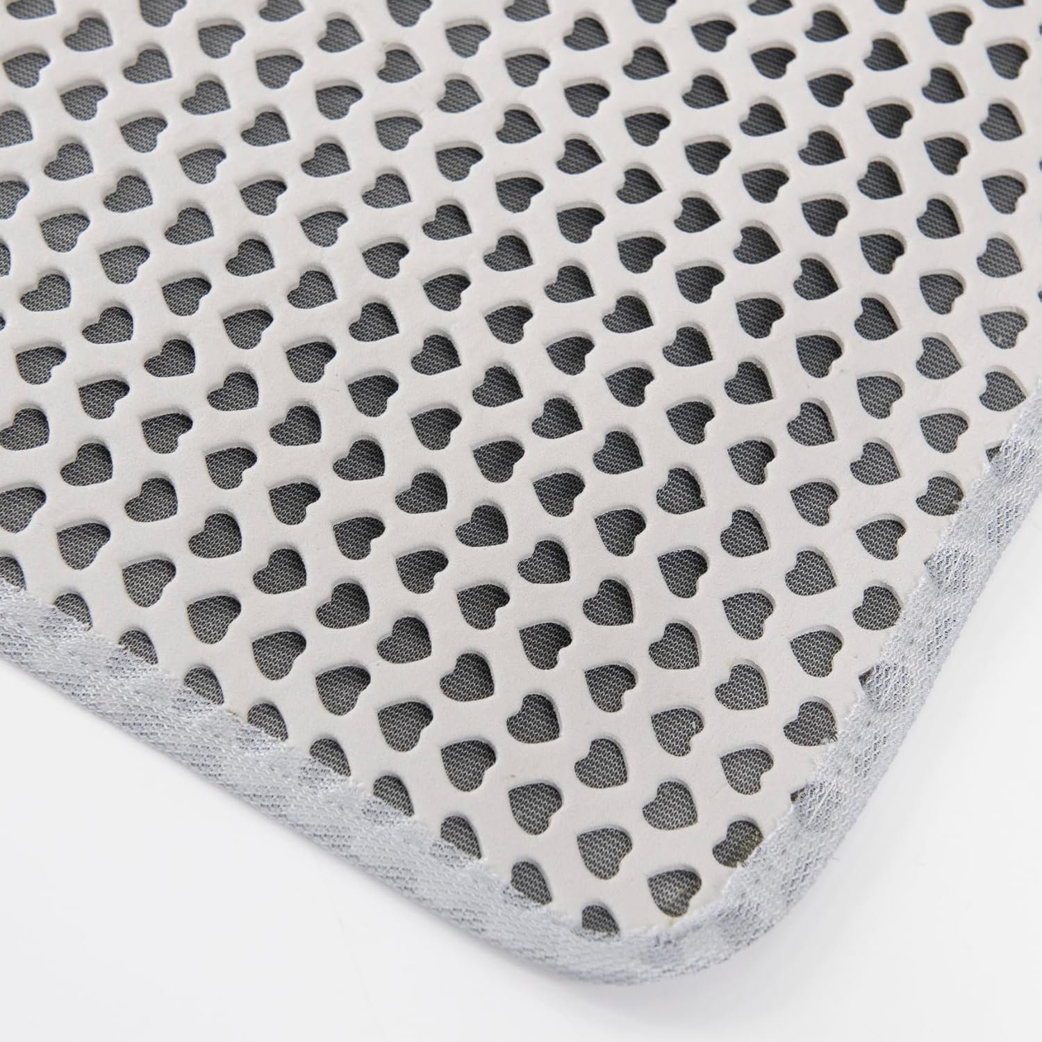 O design do tapete inclui uma abertura lateral que facilita o descarte ou reaproveitamento da areia. Assim, ao colocar o tapete em frente à caixa de areia, você simplifica a rotina de limpeza.