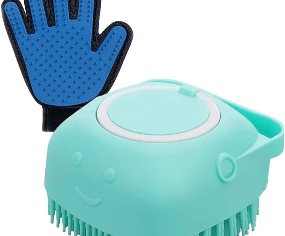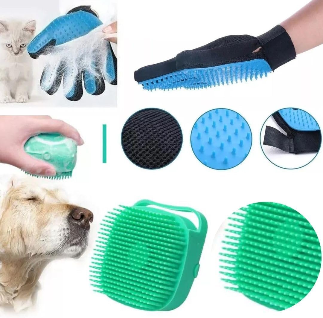 Kit Lava Pet Escova Banho Cachorro Gato Dispenser de Shampoo e Luva Nanomagnetica Tira Pelos Para Pelos Curtos – Cores Sortidas