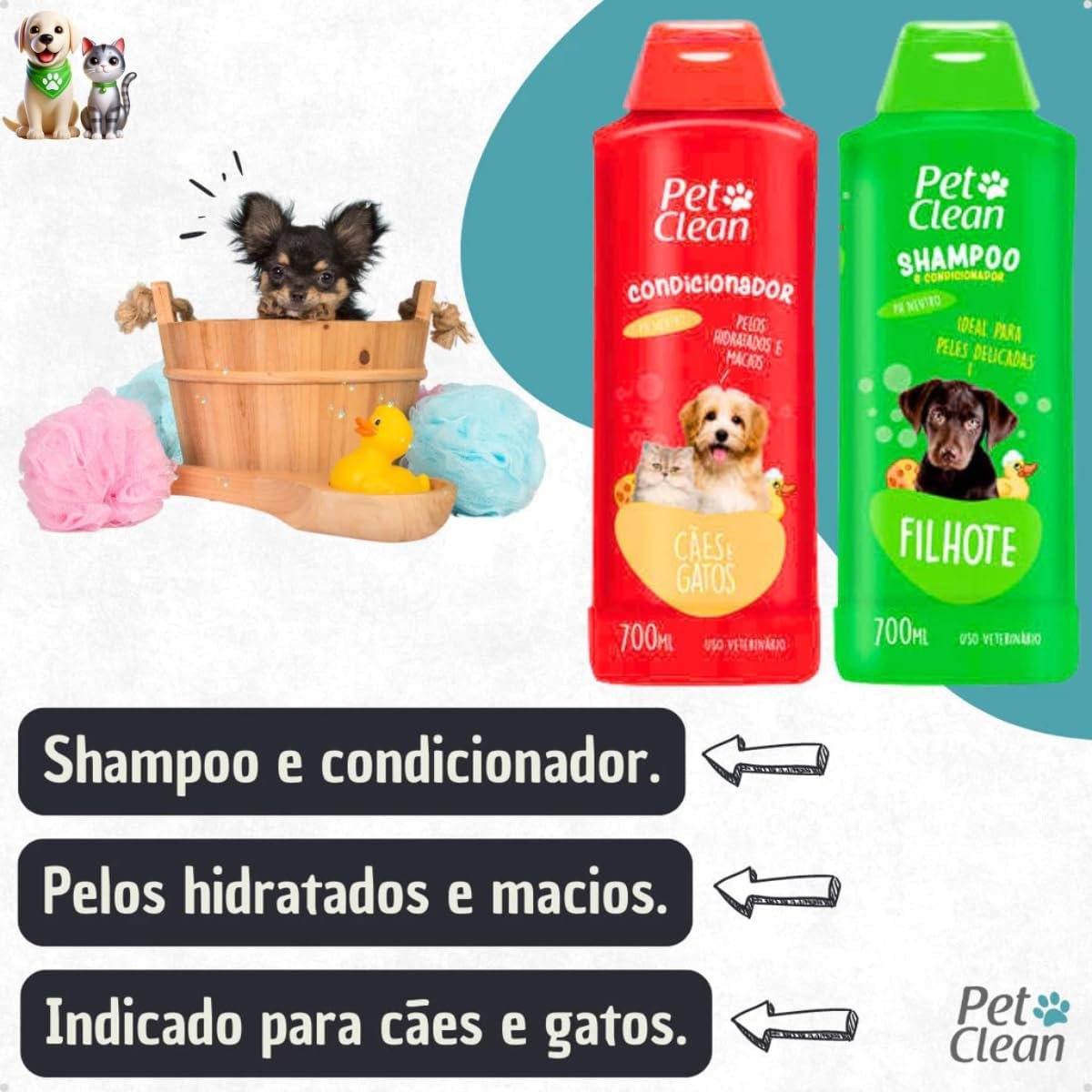 Aumente a qualidade de vida do seu pet hoje mesmo! Invista no Kit Higiene e Banho Completo Pet Clean e transforme a rotina de cuidados do seu bichinho em um momento prazeroso para vocês dois.
